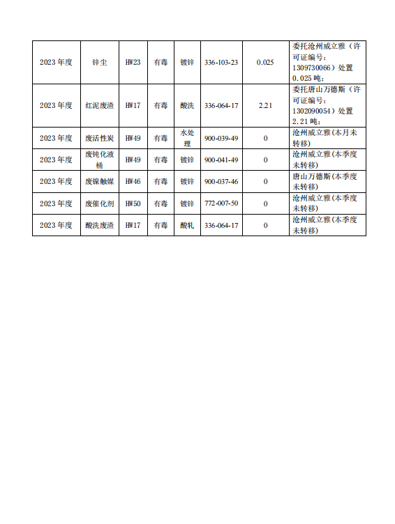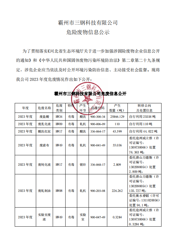 霸州市三鋼科技有限公司 危險(xiǎn)廢物信息公示